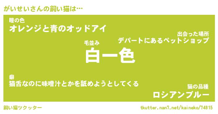 | パンダ模様のシャム猫、、(略 …「めい」 | 6月18日 03:09 |