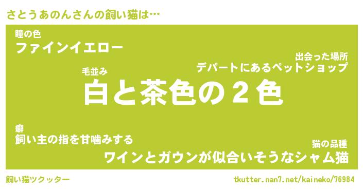 | パンダ模様のシャム猫、、(略 …「めい」 | 6月18日 03:09 |