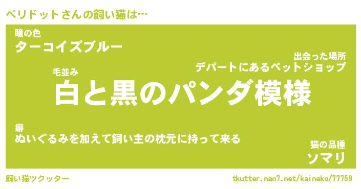 | ポケモン風あだ名 | 『ペリチュウ』『ペリドダネ』 |