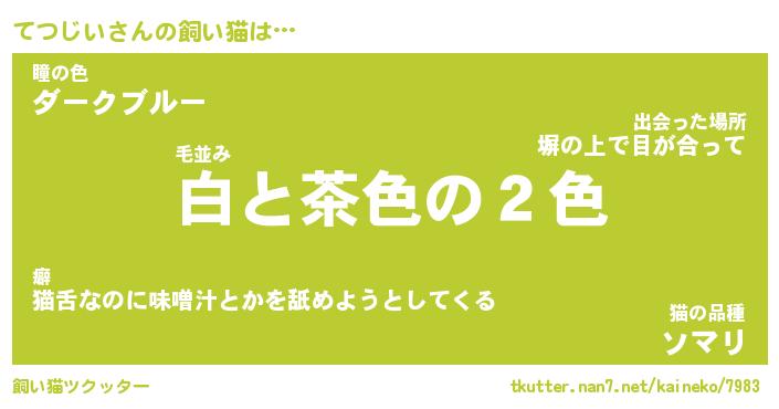 てつじいさんの飼い猫は… 毛並み『白と茶色の2色』瞳の色『ダークブルー』猫の品種『ソマリ』 ツクッター #飼い猫ツクッター http://tkutter.nan7.net/kaineko/7983/