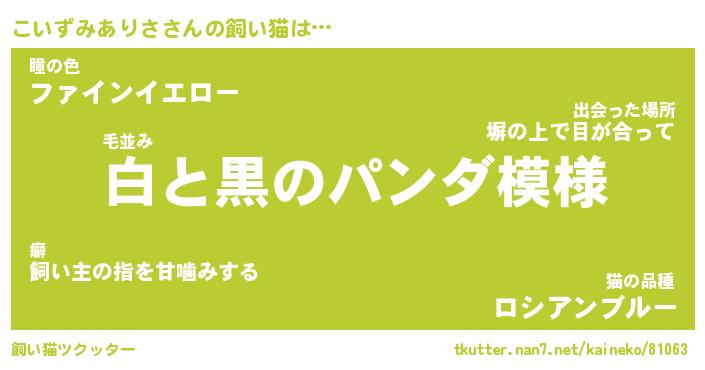 | 猫 | 猫の名前『こいずみありさーにゃん』 |