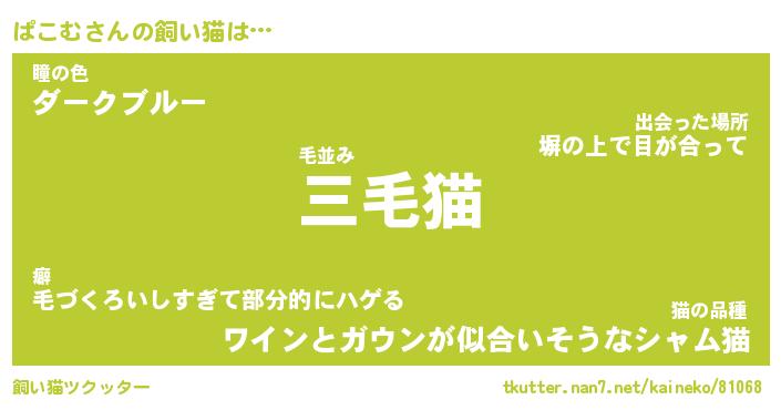| パンダ模様のシャム猫、、(略 …「めい」 | 6月18日 03:09 |
