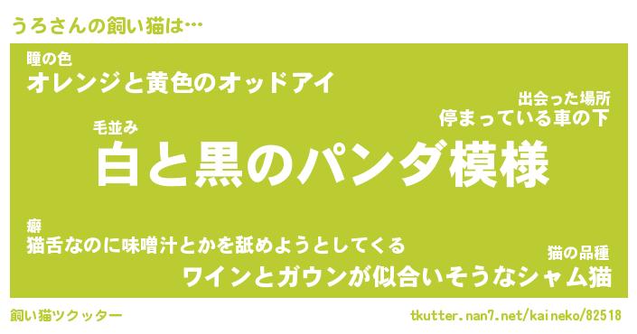 うろさんの飼い猫は… 毛並み『白と黒のパンダ模様』瞳の色『オレンジと黄色のオッドアイ』猫の品種『ワインとガウンが似合いそうなシャム猫』 ツクッター #飼い猫ツクッター http://tkutter.nan7.net/kaineko/82518/