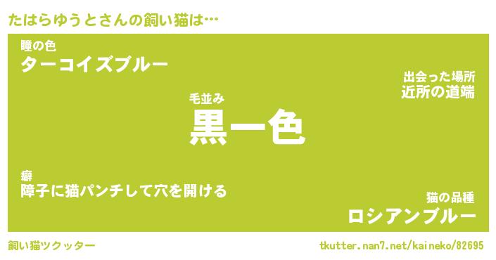 たはらゆうとさんの飼い猫は… 毛並み『黒一色』瞳の色『ターコイズブルー』猫の品種『ロシアンブルー』 ツクッター #飼い猫ツクッター http://tkutter.nan7.net/kaineko/82695/