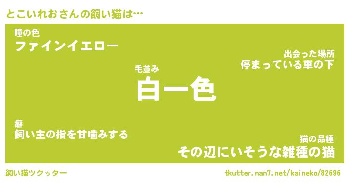 とこいれおさんの飼い猫は… 毛並み『白一色』瞳の色『ファインイエロー』猫の品種『その辺にいそうな雑種の猫』 ツクッター #飼い猫ツクッター http://tkutter.nan7.net/kaineko/82696/