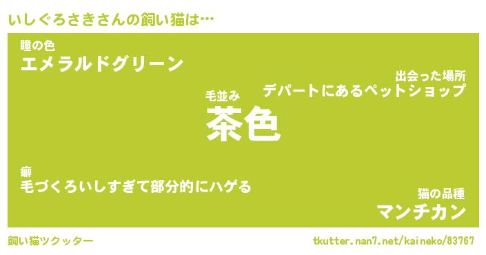 いしぐろさきさんの飼い猫は… 毛並み『茶色』瞳の色『エメラルドグリーン』猫の品種『マンチカン』 ツクッター #飼い猫ツクッター http://tkutter.nan7.net/kaineko/83767/