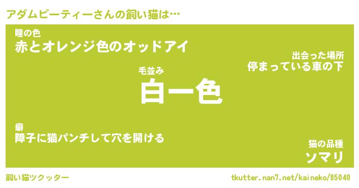 | ツイッター | アダムピーティーさんのツイッターID『konnyaku_idle』 |
