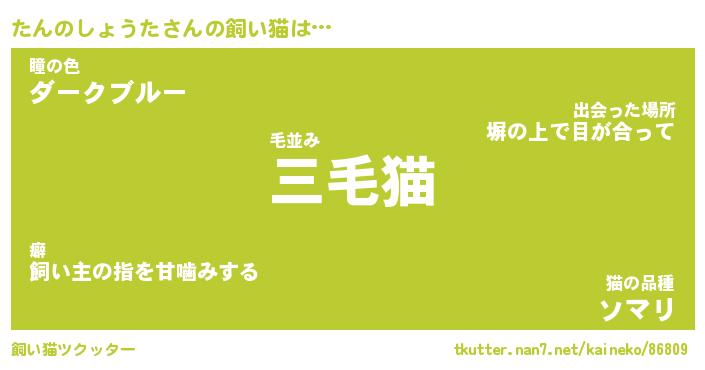たんのしょうたさんの飼い猫は… 毛並み『三毛猫』瞳の色『ダークブルー』猫の品種『ソマリ』 ツクッター #飼い猫ツクッター http://tkutter.nan7.net/kaineko/86809/