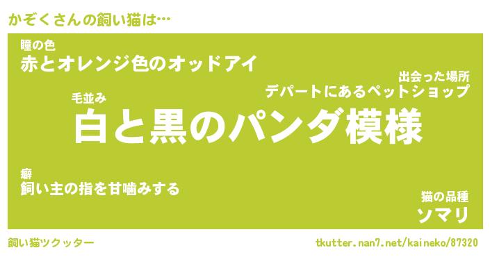 | 猫 | 猫の名前『かぞかぞにゃん』性別『♀』 |