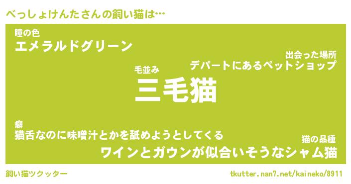 | 猫 | 猫の名前『べっべっにゃん』性別『雄』 |