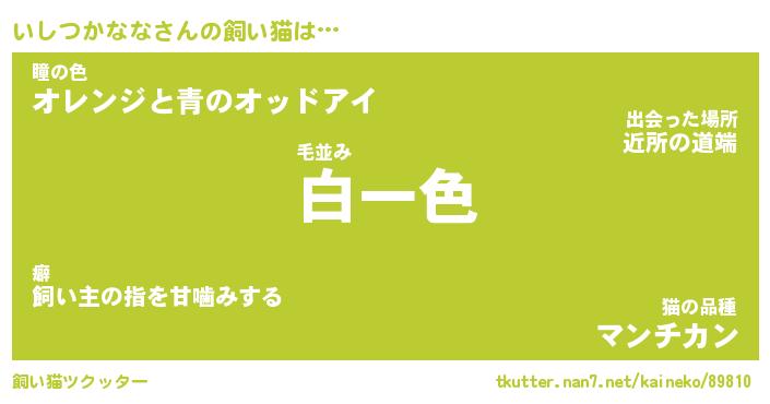 いしつかななさんの飼い猫は… 毛並み『白一色』瞳の色『オレンジと青のオッドアイ』猫の品種『マンチカン』 ツクッター #飼い猫ツクッター http://tkutter.nan7.net/kaineko/89810/