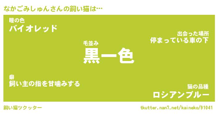 なかごみしゅんさんの飼い猫は… 毛並み『黒一色』瞳の色『バイオレッド』猫の品種『ロシアンブルー』 ツクッター #飼い猫ツクッター http://tkutter.nan7.net/kaineko/91041/