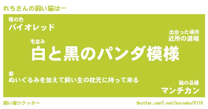 れちさんの飼い猫は… 毛並み『白と黒のパンダ模様』瞳の色『バイオレッド』猫の品種『マンチカン』 ツクッター #飼い猫ツクッター http://tkutter.nan7.net/kaineko/9110/
