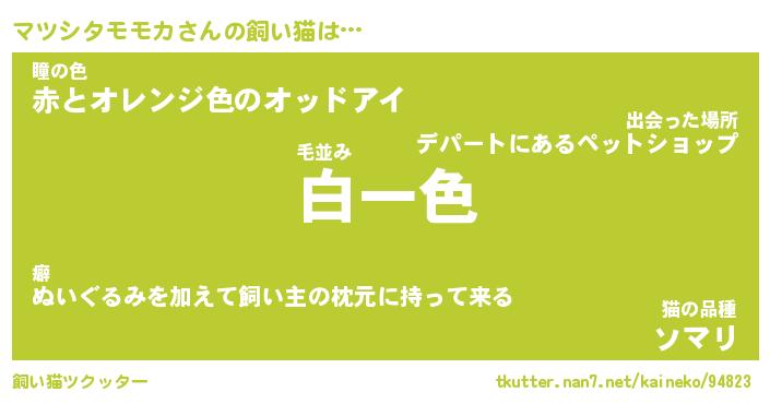 | 欧米人風あだ名 | 『マイケルマツシタモモカ』 |