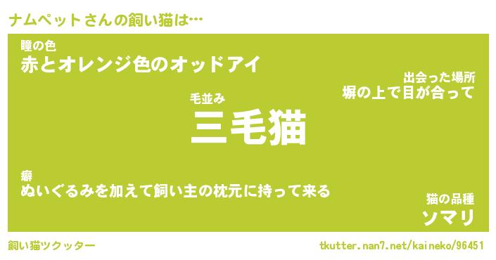 | 2回繰り返すあだ名 | 『ナムナム』『ナナムム』『にたにた』 |