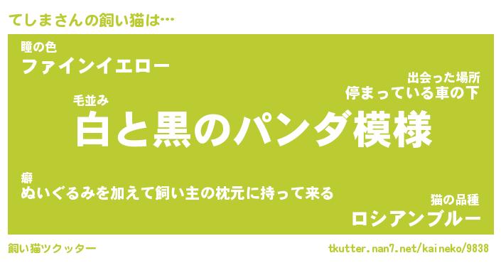 てしまさんの飼い猫は… 毛並み『白と黒のパンダ模様』瞳の色『ファインイエロー』猫の品種『ロシアンブルー』 ツクッター #飼い猫ツクッター http://tkutter.nan7.net/kaineko/9838/