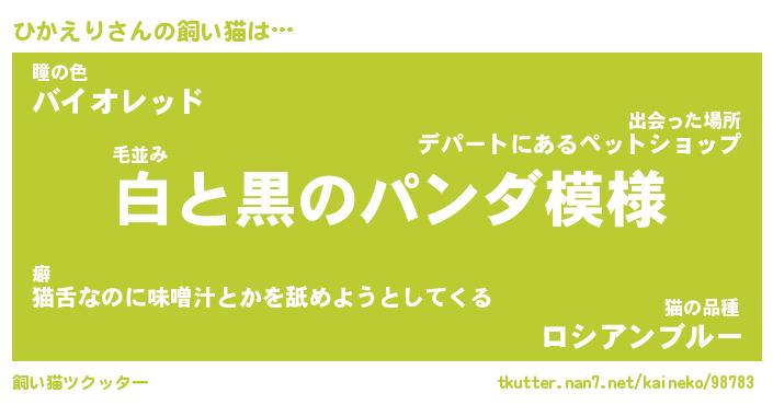 | パンダ模様のシャム猫、、(略 …「めい」 | 6月18日 03:09 |
