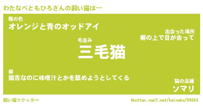 | ポケモン風あだ名 | 『ワタチュウ』『ワタナダネ』 |