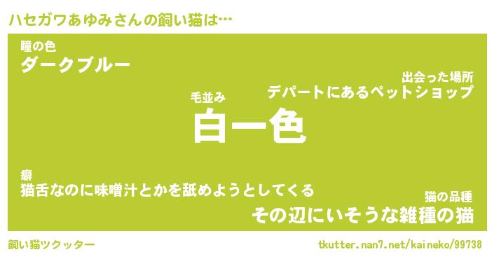 | ツイッター | ハセガワあゆみさんのツイッターID『konnyaku_star』 |