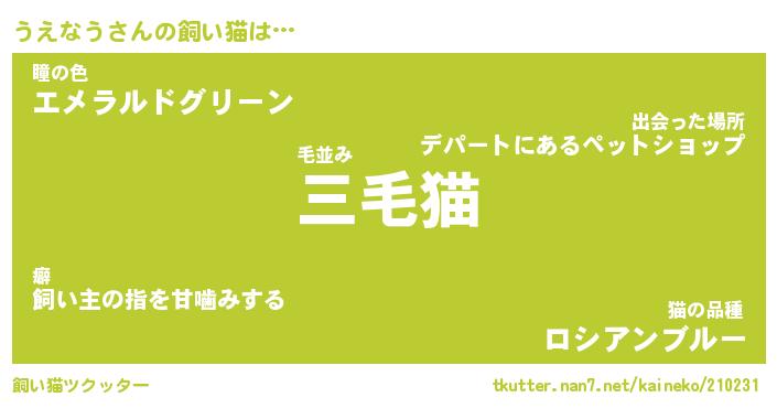 | パンダ模様のシャム猫、、(略 …「めい」 | 6月18日 03:09 |