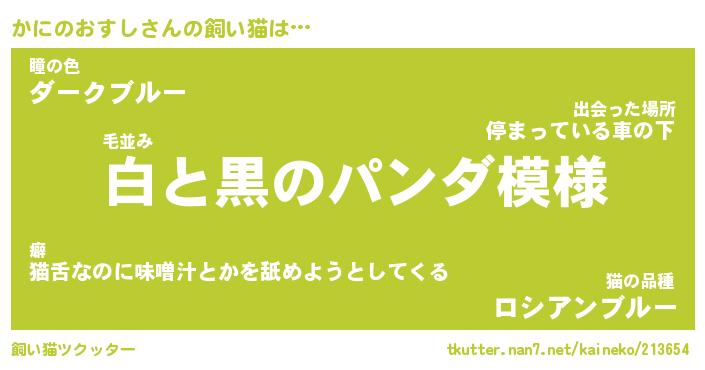 かにのおすしさんの飼い猫は… 毛並み『白と黒のパンダ模様』瞳の色『ダークブルー』猫の品種『ロシアンブルー』 ツクッター #飼い猫ツクッター http://tkutter.nan7.net/kaineko/213654/