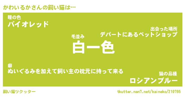 | ファンタジー風あだ名 | 『カワフェル』『エターナルカワイルカー』 |