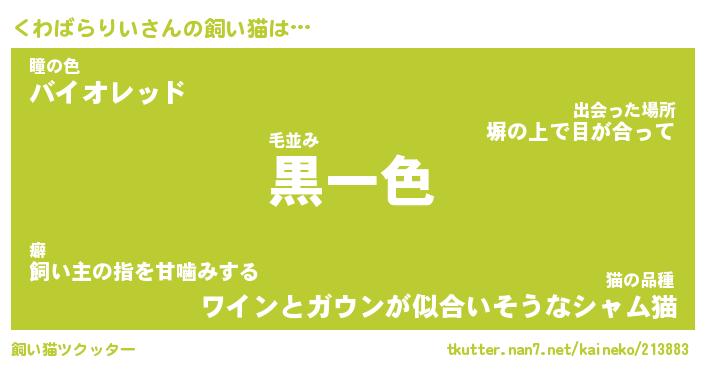 | パンダ模様のシャム猫、、(略 …「めい」 | 6月18日 03:09 |