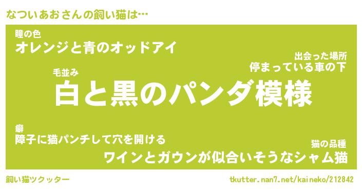 | パンダ模様のシャム猫、、(略 …「めい」 | 6月18日 03:09 |