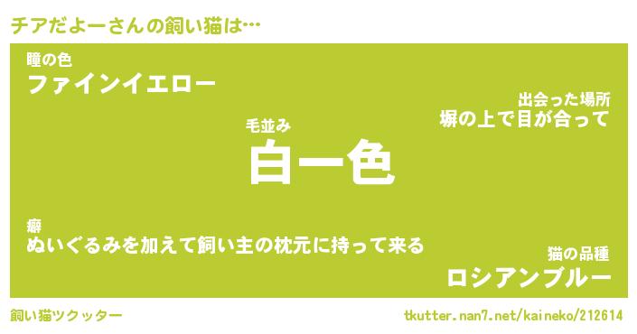| 2回繰り返すあだ名 | 『チアチア』『チチアア』『おたおた』 |