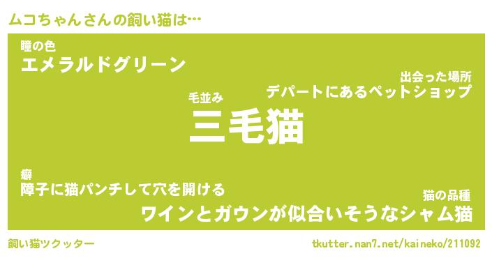 | パンダ模様のシャム猫、、(略 …「めい」 | 6月18日 03:09 |