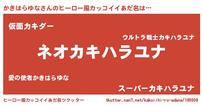 | ヘコむあだ名 | 『かきはらゆな(震え声)』『かきにゅー』 |