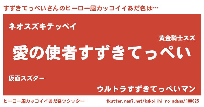 | 女子向けラノベタイトル風あだ名 | 『すずきてっぺい恋絵巻』 |