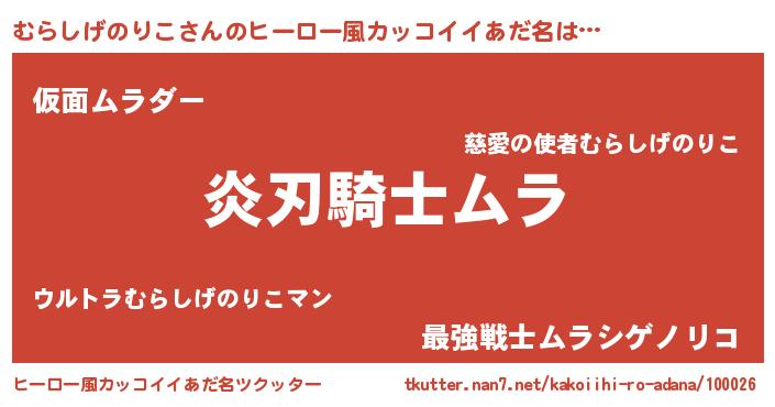 | 男性向けラノベタイトル風あだ名 | 『むらしげのりこの嫁は女の子じゃないと思った?』 |