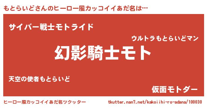 | 男性向けラノベタイトル風あだ名 | 『もとらいどの嫁は女の子じゃないと思った?』 |