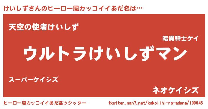 | 男性向けラノベタイトル風あだ名 | 『転生したらけいしずだった件』 |