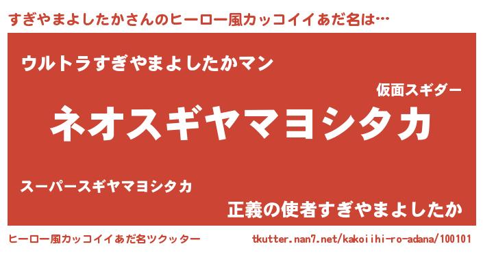 | 胡散臭い通販商品みたいなあだ名 | 『来世でも幸せになれる水素水…その名も「すぎやまよしたか」』 |