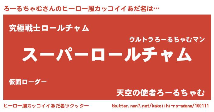 | 胡散臭い通販商品みたいなあだ名 | 『億万長者になれる霊験あらたかなお札…その名も「ろーるちゃむ」』 |