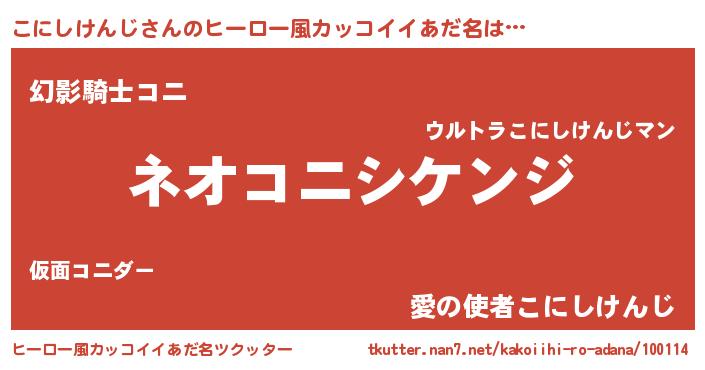 | 胡散臭い通販商品みたいなあだ名 | 『絶対に幸福をもたらす健康食品…その名も「こにしけんじ」』 |