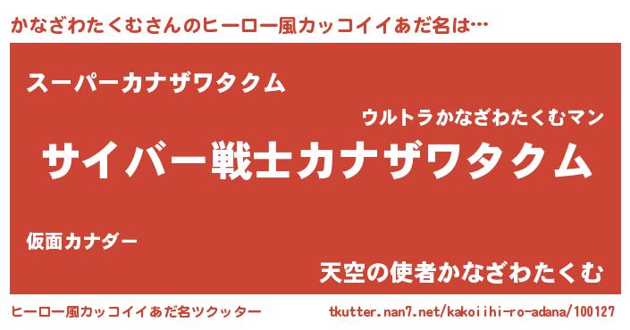 | 欧米人風あだ名 | 『トリンドルかなざわたくむ』 |
