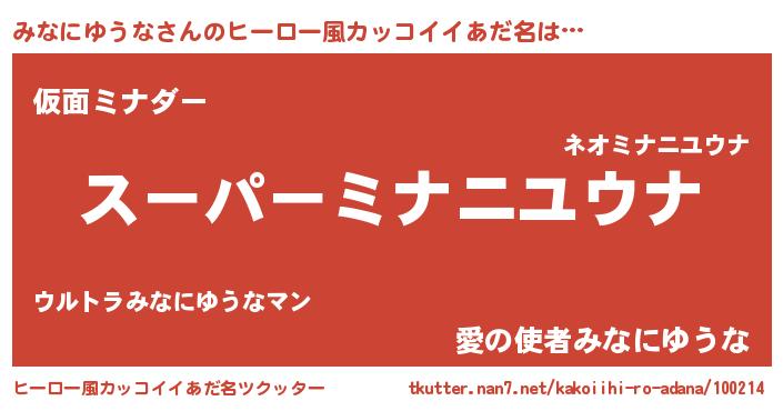 | 恥ずかしいあだ名 | 『プリティーみなにゆうな』『みなちん』 |