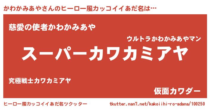 | 胡散臭い通販商品みたいなあだ名 | 『必ず成功する霊験あらたかなお札…その名も「かわかみあや」』 |