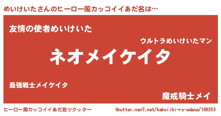 | 意味不明あだ名 | 『永久保存めいけいた』『自称めいけいた』 |