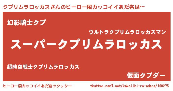 | 男性向けラノベタイトル風あだ名 | 『クプリムラロッカススレイヤー』 |