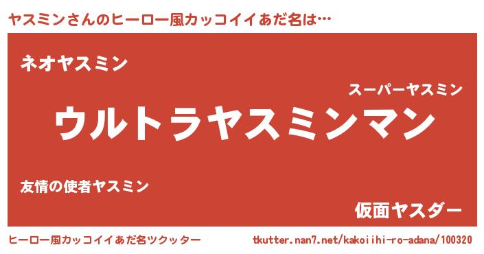 | 男性向けラノベタイトル風あだ名 | 『やはりヤスミンの青春ラブコメはまちがっている 』 |