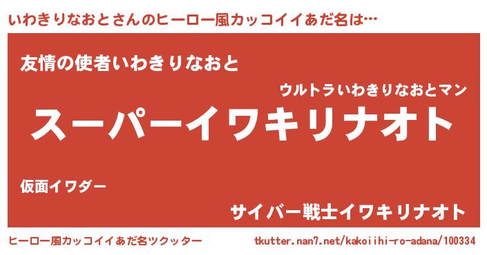| 男性向けラノベタイトル風あだ名 | 『イワキリナオトアートオンライン』 |
