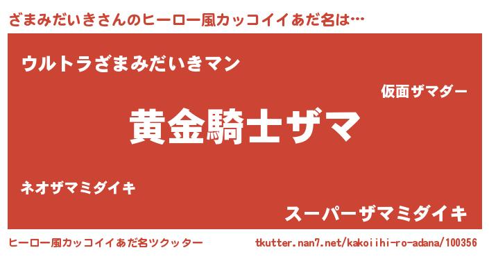 ざまみだいきさんのヒーロー風カッコイイあだ名をツクッター!