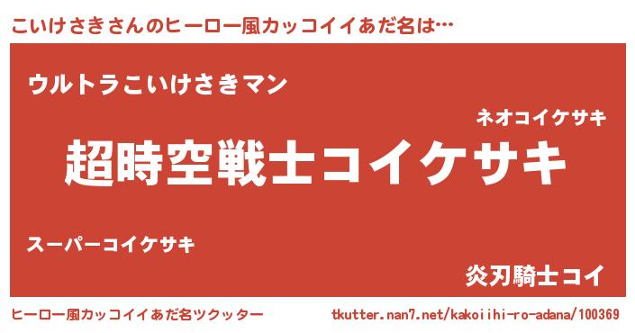 | 男性向けラノベタイトル風あだ名 | 『コイケサキスレイヤー』 |
