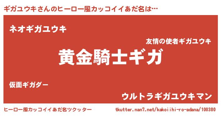 | 胡散臭い通販商品みたいなあだ名 | 『信頼と実績のサプリメント…その名も「ギガユウキ」』 |