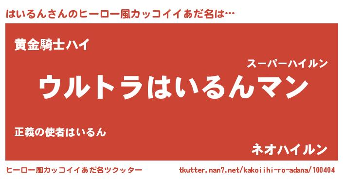 はいるんさんのヒーロー風カッコイイあだ名をツクッター!