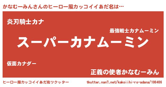 | 男性向けラノベタイトル風あだ名 | 『カナムーミンアートオンライン』 |